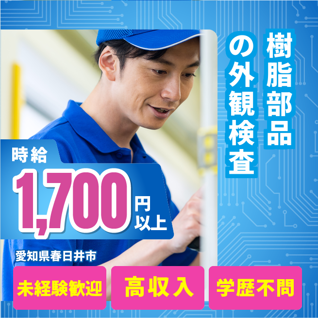 給与詳細 月収例 277,000円 時給例 1,736円 勤務地 愛知県春日井市 仕事内容 【外観検査(夜勤)】