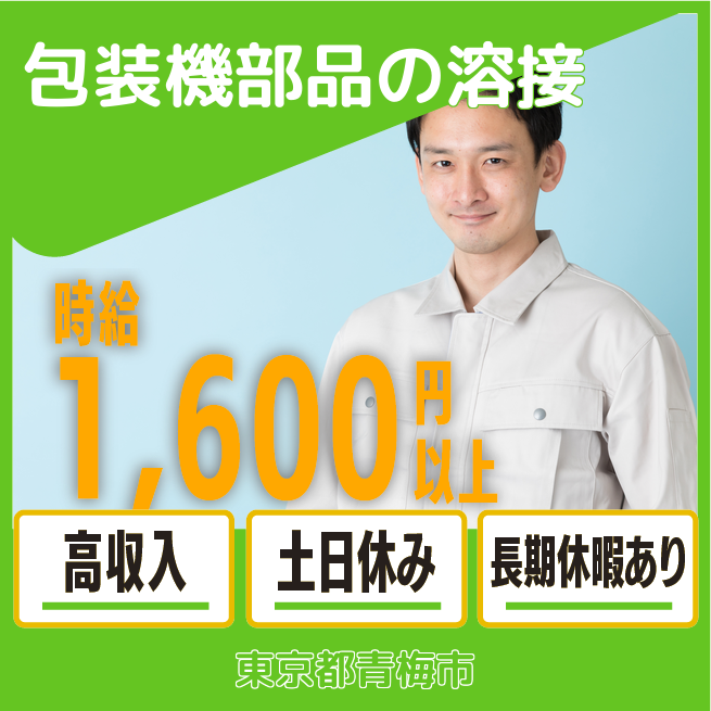 給与詳細 月収例 277,000円 時給例 1,670円 勤務地 東京都青梅市 仕事内容 【溶接・ボール盤作業/要経験(日勤)】
