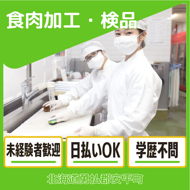 給与詳細 月収例 218,000円 日給例 10,080円 勤務地 北海道勇払郡安平町 仕事内容 【業務内容】食肉加工と検品作業を担当します