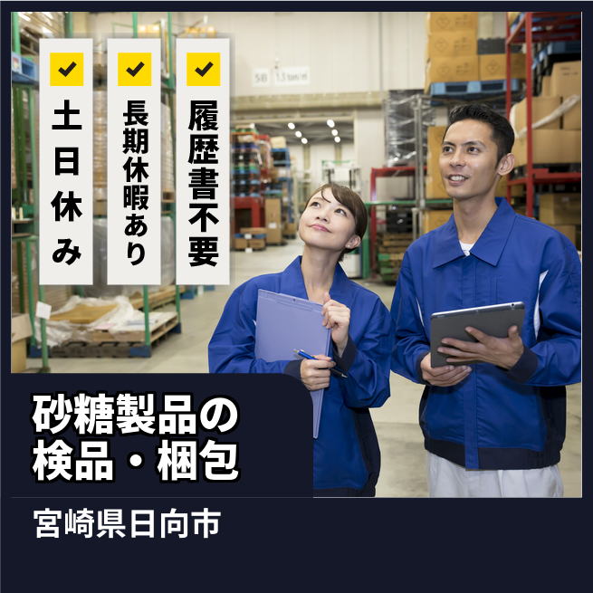 ◎砂糖・シロップ製品の検品や梱包作業をお任せします。