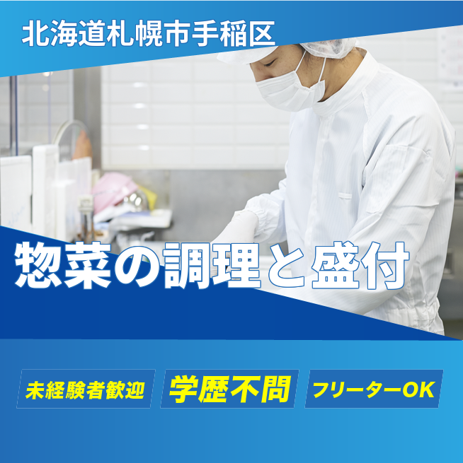 給与詳細 月収例 194,000円 時給例 1,130円 勤務地 北海道札幌市手稲区 仕事内容 【惣菜の調理・盛り付け(日勤)】