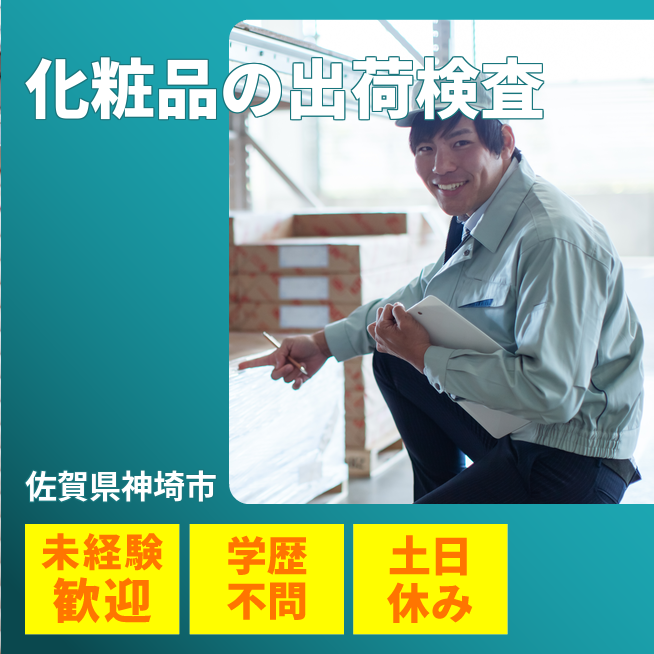 給与詳細 月収例 161,000円 時給例 1,150円 勤務地 佐賀県神埼市 仕事内容 【化粧品の出荷検査や検品(日勤)】