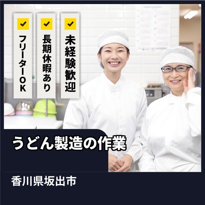 【月収例】27.2万円(16日勤務+残業40h+休出2日) 交通費 支給なし 応募の流れ 本ページ内<応募する>ボタンより、必要項目をご入力の上、ご応募ください。 勤務地 【勤務地】香川県坂出市府中町 勤務時間 【勤務地】【日勤】