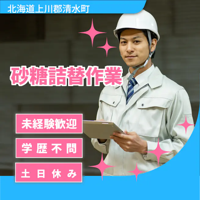 【月収例】20.1万円(21日勤務 ※残業なしの場合) 交通費 支給なし 応募の流れ 本ページ内<応募する>ボタンより、必要項目をご入力の上、ご応募ください。 勤務地 【勤務地】北海道上川郡清水町- 勤務時間 【勤務地】【日勤】