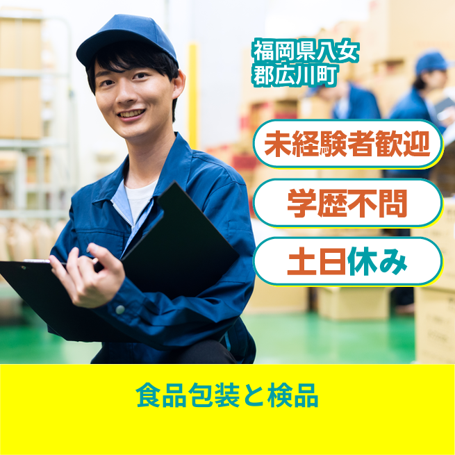 給与詳細 月収例 192,000円 時給例 1,200円 勤務地 福岡県八女郡広川町 仕事内容 【調味料や加工食品の包装・検品(日勤)】