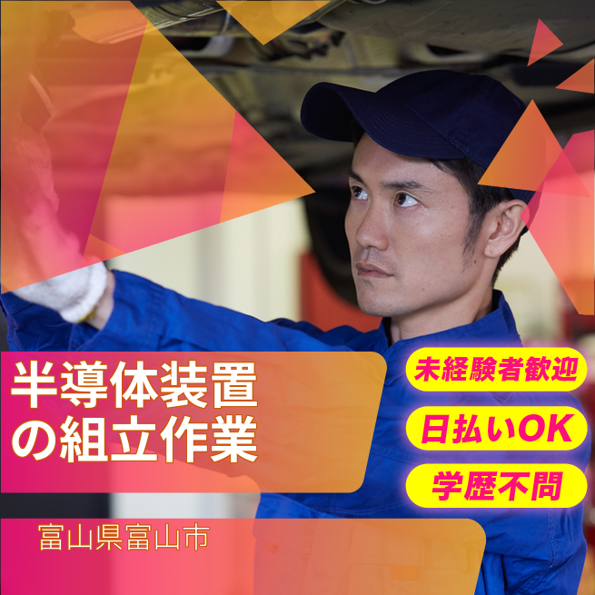 給与詳細 月収例 201,000円 時給例 1,200円 勤務地 富山県富山市 仕事内容 【半導体装置の組立など(日勤)】