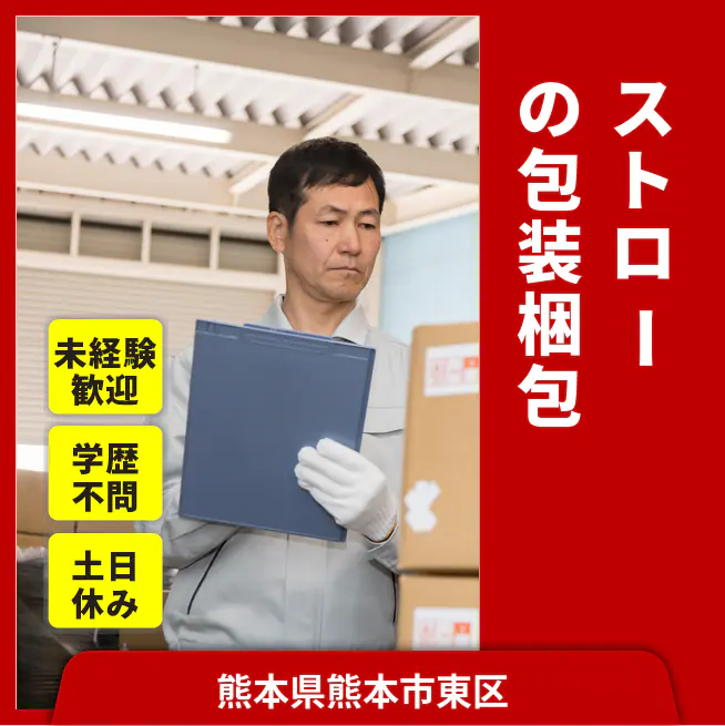 給与詳細 月収例 202,000円 時給例 1,200円 勤務地 熊本県熊本市東区 仕事内容 【ストローの包装・梱包作業(3交替)】