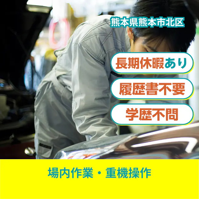 【月収例】21.3万円(23日勤務+休出3日) 交通費 支給なし 応募の流れ 本ページ内<応募する>ボタンより、必要項目をご入力の上、ご応募ください。 勤務地 【勤務地】熊本県熊本市北区- 勤務時間 【勤務地】【日勤】