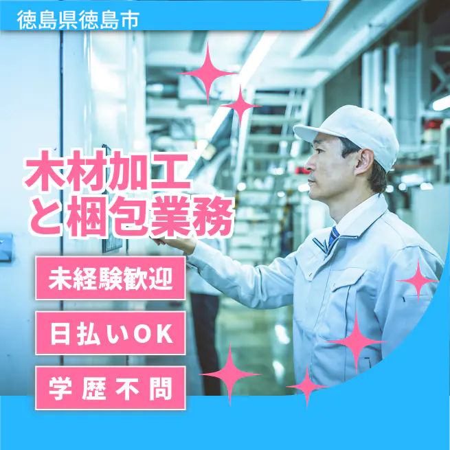 給与詳細 月収例 210,000円 時給例 1,220円 勤務地 徳島県徳島市 仕事内容 【業務内容】木材製品の加工・検査・梱包を行う仕事です