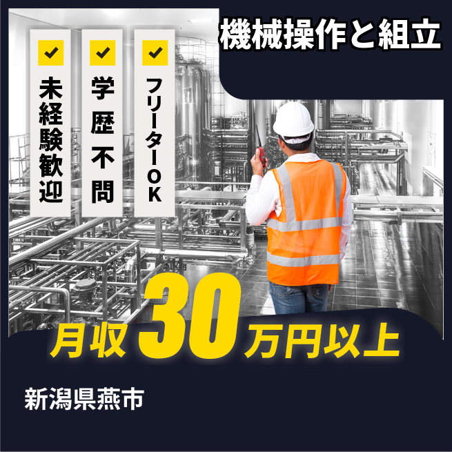 給与詳細 月収例 306,000円 時給例 1,230円 勤務地 新潟県燕市 仕事内容 【業務内容】
