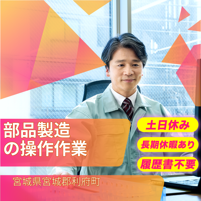 給与詳細 月収例 241,000円 日給例 10,000円 勤務地 宮城県宮城郡利府町 仕事内容 【部品のセットとボタン操作(3交替)】