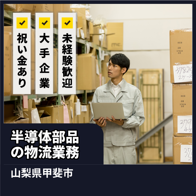 ※残業時間については、多少の増減あり 【入社祝い金】 入社祝金20万円プレゼント! 交通費 支給なし 応募の流れ 本ページ内<応募する>ボタンより、必要項目をご入力の上、ご応募ください。 勤務地 【勤務地】山梨県甲斐市宇津谷 勤務時間 【勤務地】【日勤】