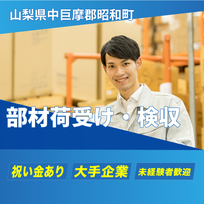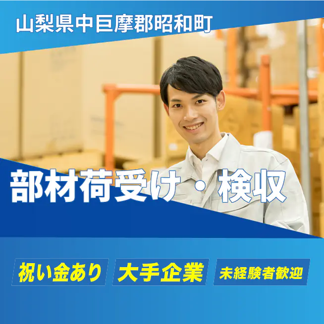【月収例】19.3万円(20日勤務 ※残業なしの場合) 【入社祝い金】 入社祝金20万円プレゼント!※規定あり 交通費 支給なし 応募の流れ 本ページ内<応募する>ボタンより、必要項目をご入力の上、ご応募ください。 勤務地 【勤務地】山梨県中巨摩郡昭和町- 勤務時間 【勤務地】【日勤】