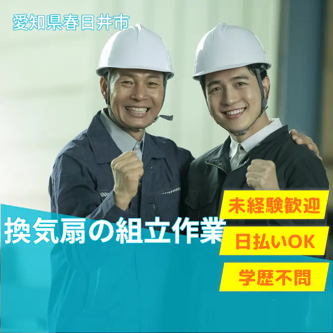 給与詳細 月収例 215,000円 日給例 10,000円 勤務地 愛知県春日井市 仕事内容 【業務内容】小型換気扇の組立作業