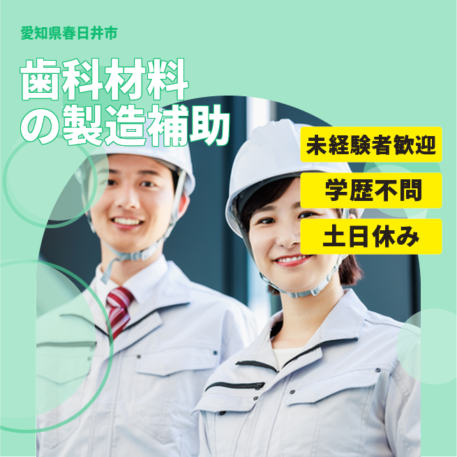 給与詳細 月収例 218,000円 日給例 10,000円 勤務地 愛知県春日井市 仕事内容 【歯科材料の製造補助(日勤)】