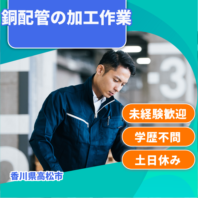 給与詳細 月収例 220,000円 日給例 10,000円 勤務地 香川県高松市 仕事内容 【業務内容】 銅配管の加工を担当するお仕事です。