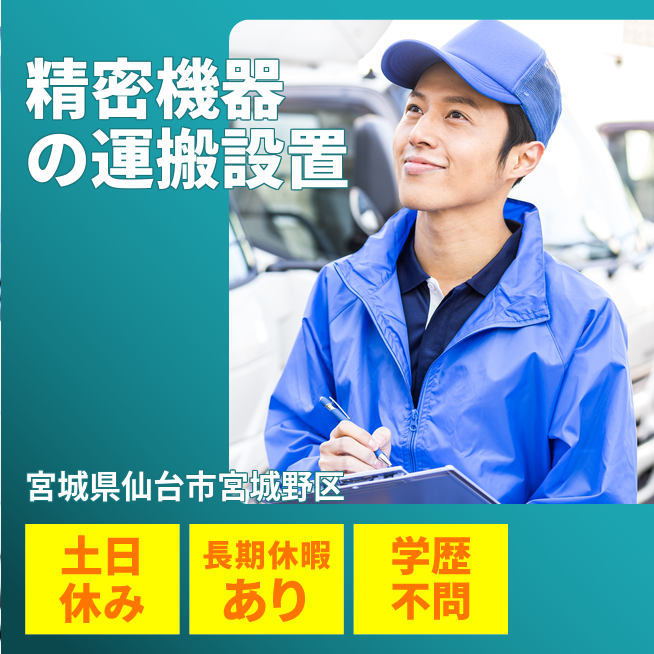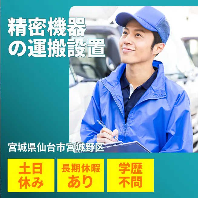 給与詳細 月収例 259,000円 日給例 10,000円 勤務地 宮城県仙台市宮城野区 仕事内容 【業務内容】大型製品の運搬と設置を行う日勤の仕事です