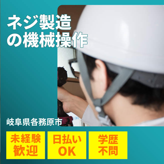 給与詳細 月収例 216,000円 日給例 10,400円 勤務地 岐阜県各務原市 仕事内容 【ネジの製造(日勤)】