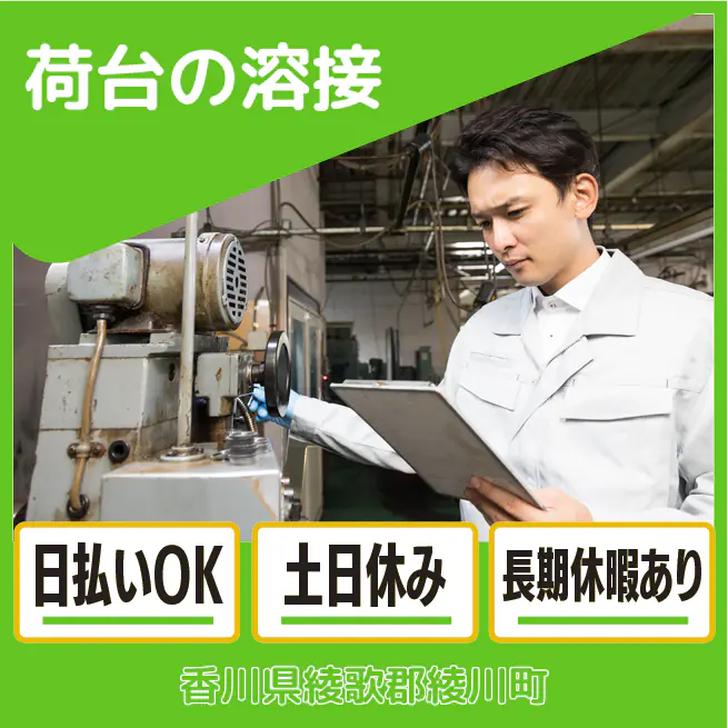 8:00~17:00 休憩60分 [実働]8時間00分 必須資格 溶接の資格をお持ちの方(男性活躍中)