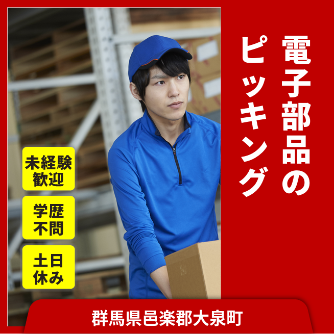 給与詳細 月収例 201,000円 日給例 10,400円 勤務地 群馬県邑楽郡大泉町 仕事内容 【仕分け・ピッキング(日勤)】
