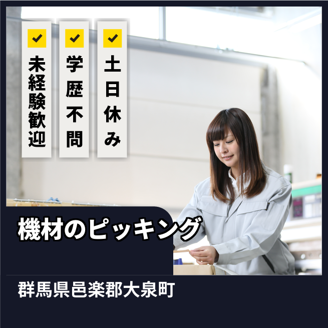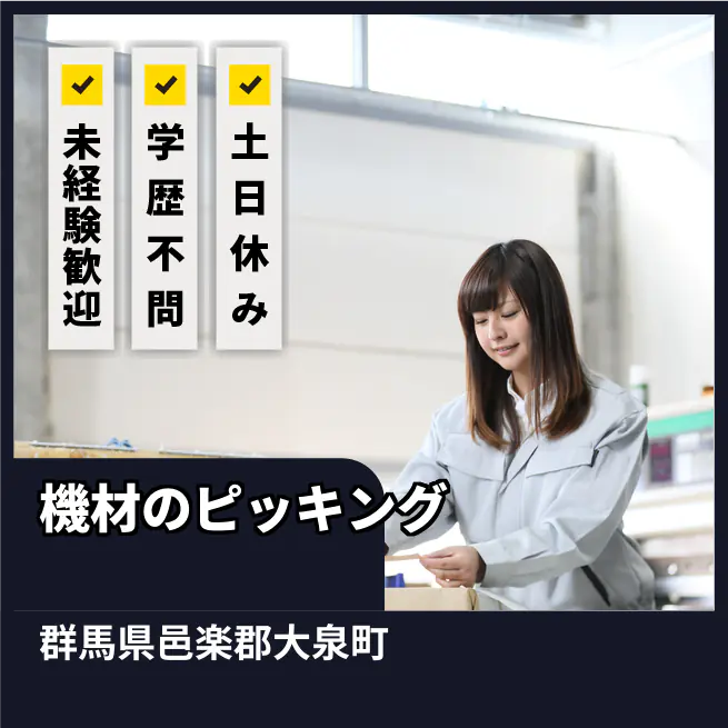 【月収例】20.1万円(20日勤務 ※残業なしの場合) 交通費 支給なし 応募の流れ 本ページ内<応募する>ボタンより、必要項目をご入力の上、ご応募ください。 勤務地 【勤務地】群馬県邑楽郡大泉町- 勤務時間 【勤務地】【日勤】
