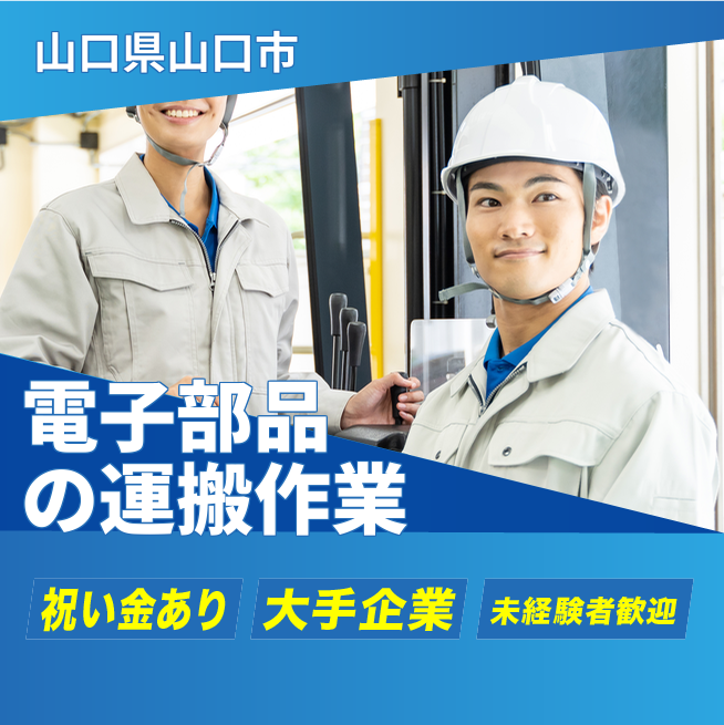 給与詳細 月収例 234,000円 日給例 10,400円 勤務地 山口県山口市 仕事内容 【電子部品の運搬(日勤)】
