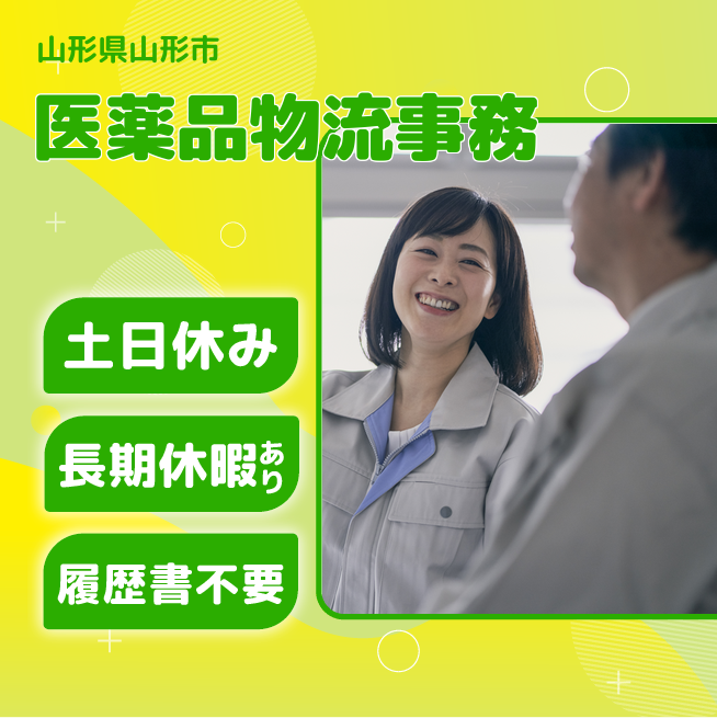 給与詳細 月収例 232,000円 日給例 10,400円 勤務地 山形県山形市 仕事内容 【業務内容】 医薬品物流センターでの一般事務作業