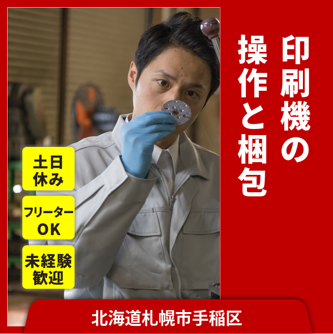 給与詳細 月収例 276,000円 日給例 10,400円 勤務地 北海道札幌市手稲区 仕事内容 【印刷機の機械オペレーター(2交替)】