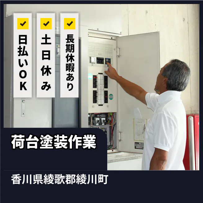 ※未経験者の方は時給1200円 交通費 支給なし 応募の流れ 本ページ内<応募する>ボタンより、必要項目をご入力の上、ご応募ください。 勤務地 【勤務地】香川県綾歌郡綾川町- 勤務時間 【勤務地】【日勤】
