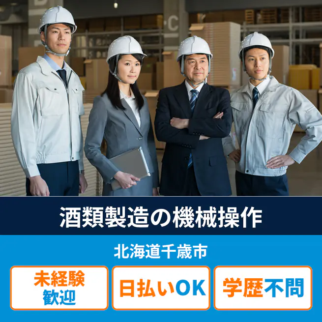 給与詳細 月収例 203,000円 日給例 10,400円 勤務地 北海道千歳市 仕事内容 【酒類製造の機械オペレーター(日勤)】