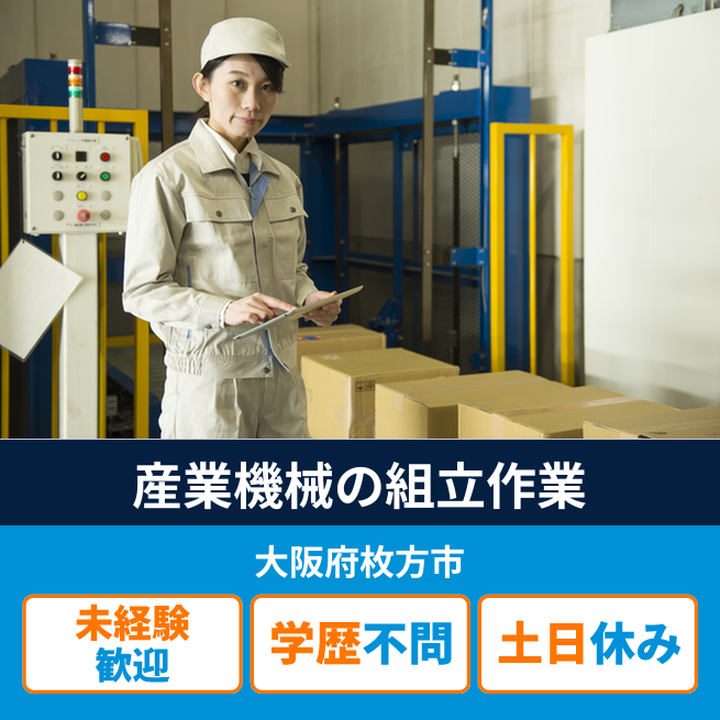 給与詳細 月収例 202,000円 日給例 10,800円 勤務地 大阪府枚方市 仕事内容 【産業用機械装置の組立(日勤)】