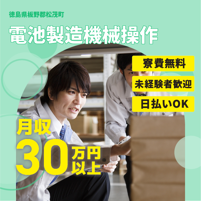 給与詳細 月収例 303,000円 日給例 10,800円 勤務地 徳島県板野郡松茂町 仕事内容 【機械オペレーター(2交替)】
