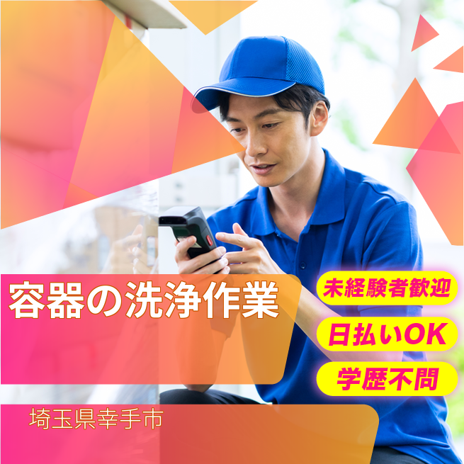 給与詳細 月収例 213,000円 日給例 10,800円 勤務地 埼玉県幸手市 仕事内容 【容器洗浄オペレーター(日勤)】