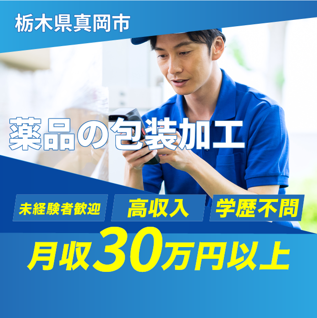給与詳細 月収例 315,000円 日給例 11,200円 勤務地 栃木県真岡市 仕事内容 【薬品の包装加工(3交替)】