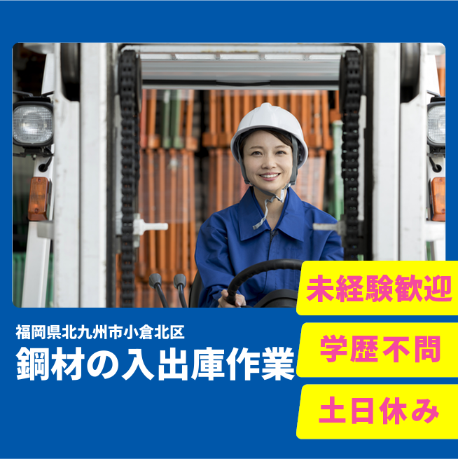 給与詳細 月収例 224,000円 日給例 11,200円 勤務地 福岡県北九州市小倉北区 仕事内容 【入出庫業務/軽作業(日勤)】