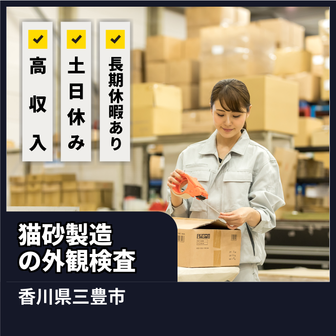給与詳細 月収例 293,000円 日給例 11,200円 勤務地 香川県三豊市 仕事内容 【製品の外観検査/要資格(2交替)】