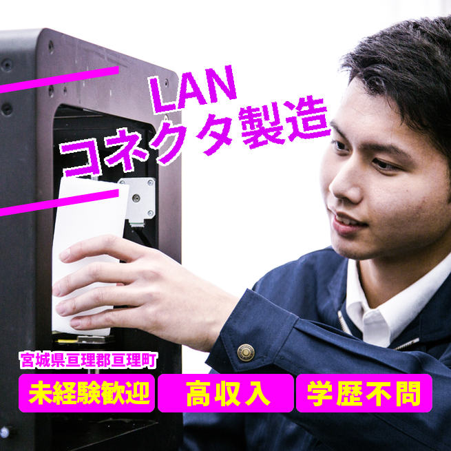 給与詳細 月収例 291,000円 日給例 11,200円 勤務地 宮城県亘理郡亘理町 仕事内容 【LANケーブルのコネクタ製造(2交替)】