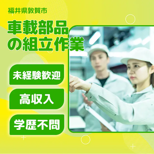 給与詳細 月収例 216,000円 日給例 11,200円 勤務地 福井県敦賀市 仕事内容 【車載部品の組立(2交替)】