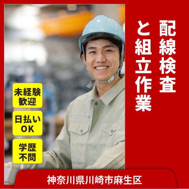 給与詳細 月収例 241,000円 日給例 11,200円 勤務地 神奈川県川崎市麻生区 仕事内容 【配線 検査(日勤)】