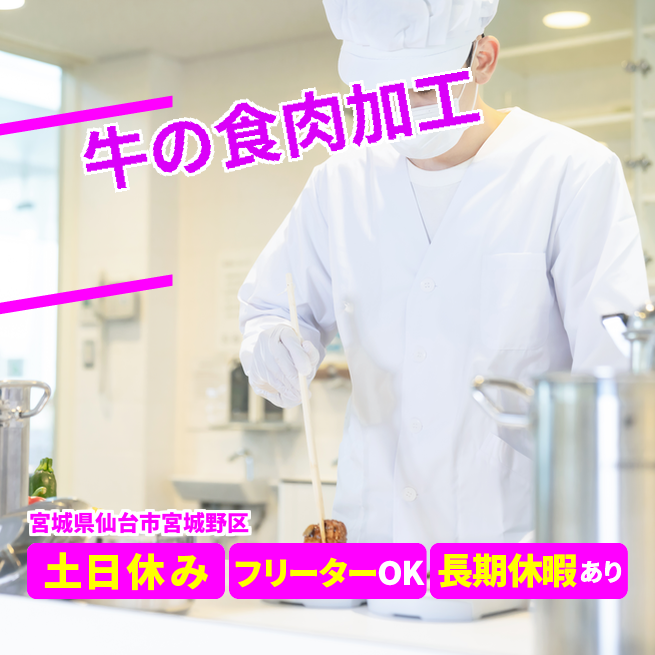 給与詳細 月収例 224,000円 日給例 11,200円 勤務地 宮城県仙台市宮城野区 仕事内容 【牛の食肉処理(日勤)】