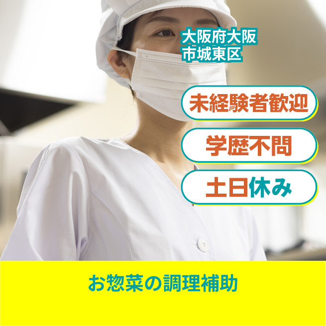 給与詳細 月収例 240,000円 日給例 11,440円 勤務地 大阪府大阪市城東区 仕事内容 【お惣菜調理補助(日勤)】