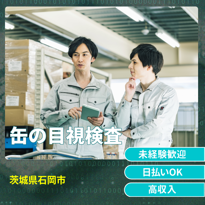 給与詳細 月収例 298,000円 日給例 11,600円 勤務地 茨城県石岡市 仕事内容 【缶の目視検査(2交替)】