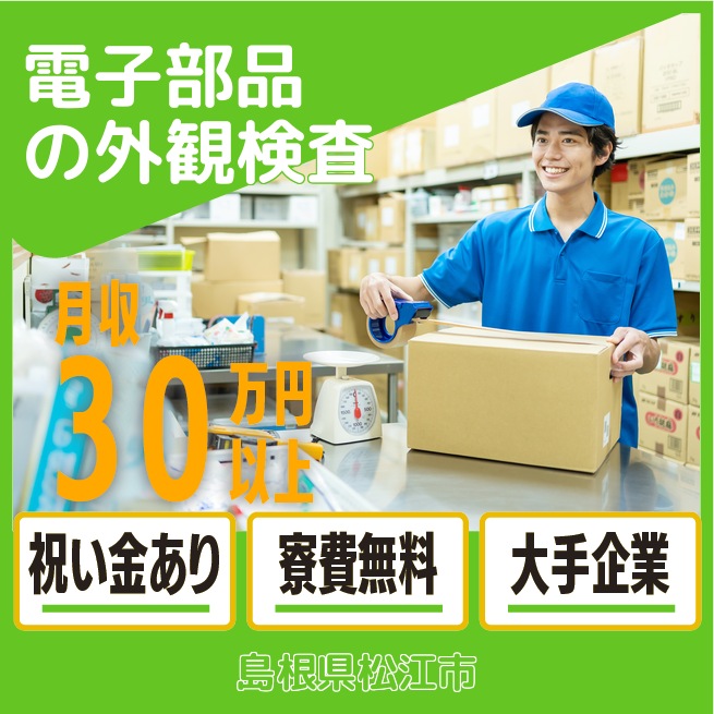 給与詳細 月収例 304,000円 日給例 11,600円 勤務地 島根県松江市 仕事内容 【カンタンな検査・運搬(2交替)】