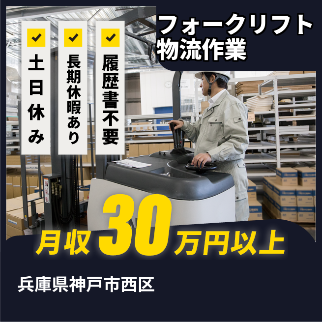 給与詳細 月収例 308,000円 日給例 11,600円 勤務地 兵庫県神戸市西区 仕事内容 【物流/要資格(2交替)】