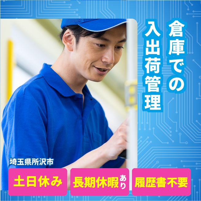 給与詳細 月収例 203,000円 日給例 11,600円 勤務地 埼玉県所沢市 仕事内容 【倉庫内での入出荷管理・梱包(日勤)】