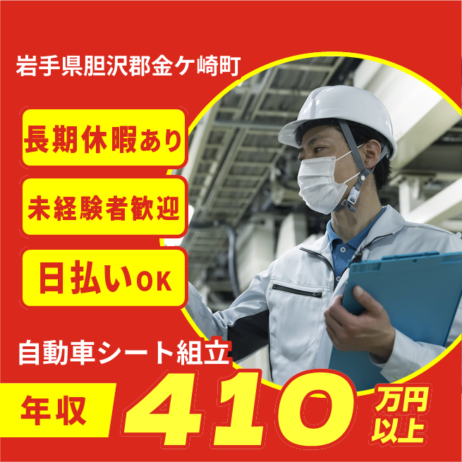 ※3ヶ月後は時給1500円 交通費 支給あり 応募の流れ 本ページ内<応募する>ボタンより、必要項目をご入力の上、ご応募ください。 勤務地 【勤務地】岩手県胆沢郡金ケ崎町- 勤務時間 【勤務地】【2交替】