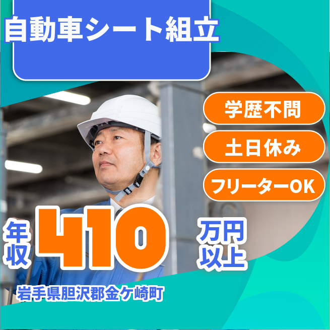 給与詳細 年収例 4,188,000円 月収例 349,000円 勤務地 岩手県胆沢郡金ケ崎町 仕事内容 【自動車シートの組立作業(2交替)】