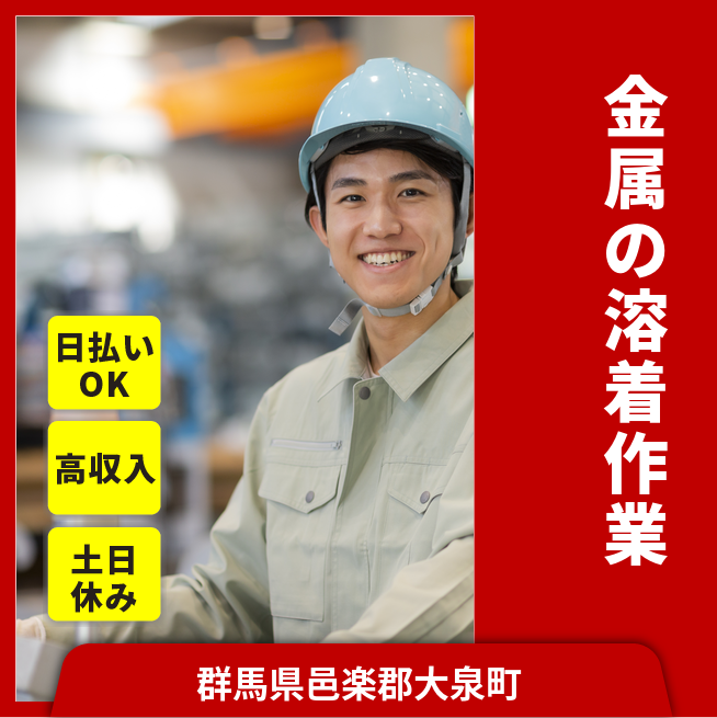 給与詳細 月収例 268,000円 日給例 12,000円 勤務地 群馬県邑楽郡大泉町 仕事内容 【部材の接合(日勤)】