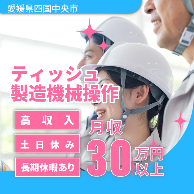 給与詳細 月収例 307,000円 日給例 12,000円 勤務地 愛媛県四国中央市 仕事内容 【機械オペレーター(3交替制)】