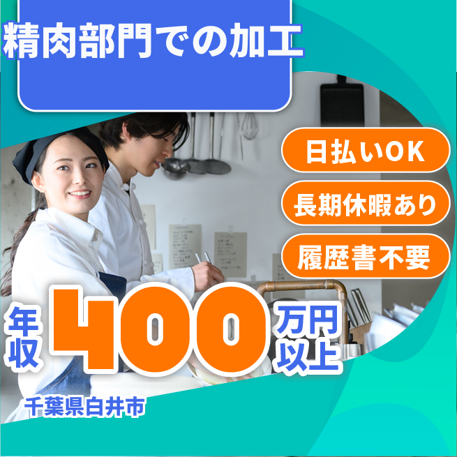 給与詳細 年収例 4,032,000円 月収例 336,000円 勤務地 千葉県白井市 仕事内容 【肉のカットやパック詰めなど(日勤)】